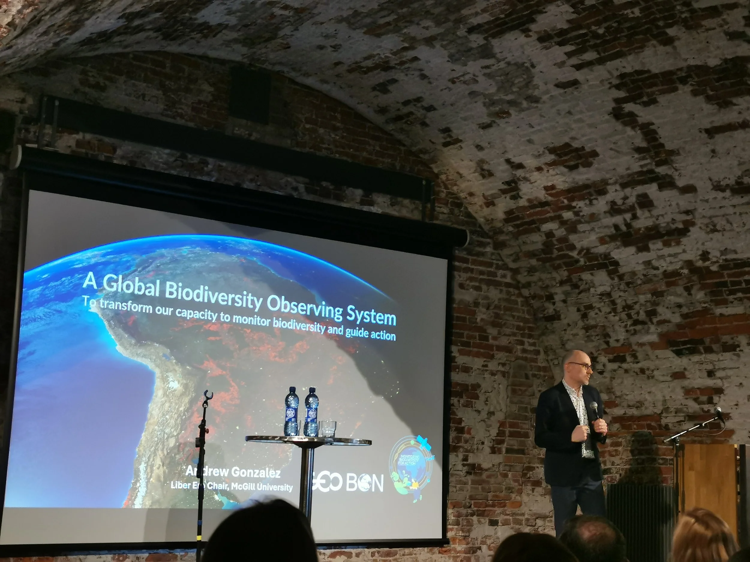 Andy giving a talk about GBiOS at the Finland's Ecosystem observatory launch event in Helsinki.
